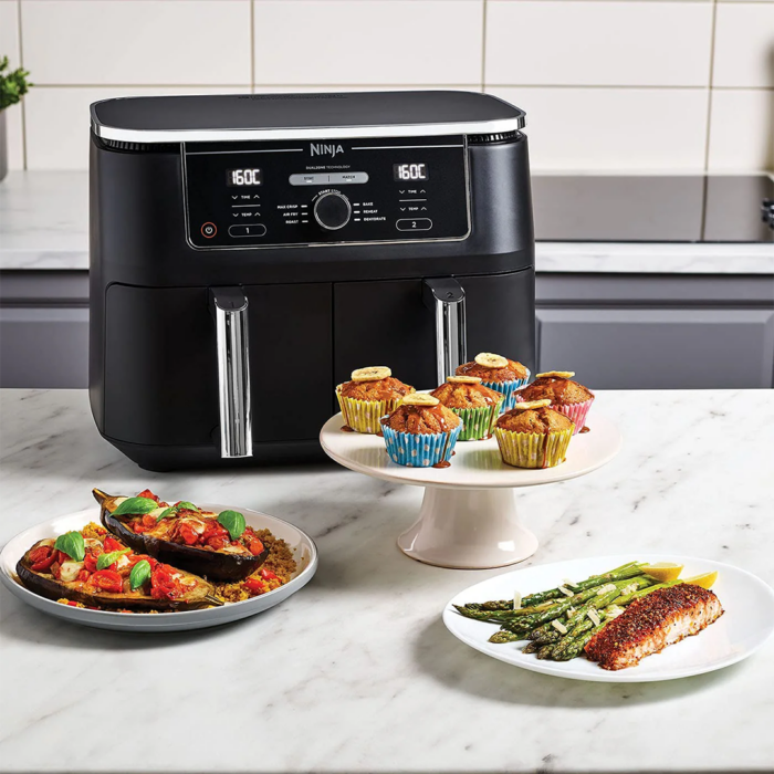 Seade mahutab kokku 7,6 liitrit – iga küpsetuskorv on 3,8-liitrine. 2400 W võimsus ja reguleeritav temperatuur kuni 240 °C tagavad kiire ja täpse küpsetuse. Kasutamine on lihtne tänu LCD-ekraanile ja kuuele automaatprogrammile. Kõik eemaldatavad osad on mittenakkuvad ja nõudepesumasinas pestavad, mis teeb puhastamise kiireks ja mugavaks.
