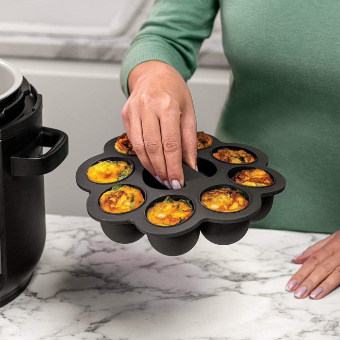 Valmista oma lemmikminimuffineid, munamuffineid, tassikooke ja palju muud Ninja silikoonist muffinivormiga. Painduv silikoonmaterjal tagab, et küpsetised tulevad hõlpsalt vormist välja, samal ajal kui kaas aitab suupisted värskena hoida hilisemaks nautimiseks.
